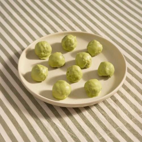 Tüm malzemeler rondoda birleşecek kıvama gelinceye kadar karıştırılır. Ardından küçük toplar haline getirilir. Beyaz çikolata ve matchalı karışımla kaplanır, buzdolabından dinlendirilir. Afiyet olsun!
