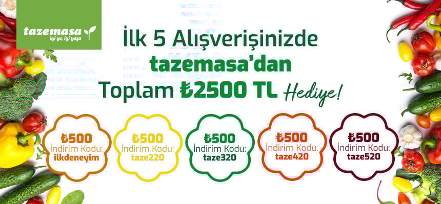 İlk 5 alışverişinizde kullanabilceğiniz 1.000 TL için zincir hediye çekleri şimdi tazemasa'da!